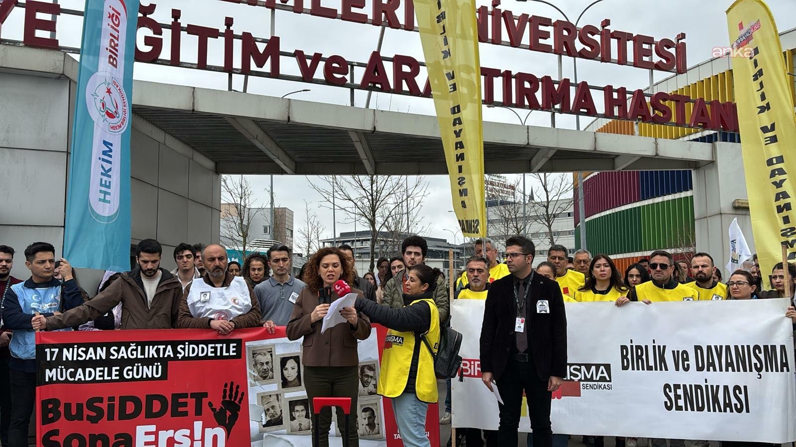 17 Nisan Sağlıkta Şiddetle Mücadele Günü’nde Ümraniye Eğitim Araştırma Hastanesi Kadın Doğum Çocuk Binası önünde bir araya gelen sağlık meslek örgütleri temsilcileri “Bir kişi daha eksilmeyeceğiz, birlikteyiz, susmuyoruz” dedi. Hekim Birliği Sendikası, Hemşireler ve Tüm Sağlık Profesyonelleri Sendikası, İstanbul Aile Hekimleri Derneği, İstanbul Tabip Odası ve Birlik ve Dayanışma Sendikası yetkililerinin katıldığı eylemde sağlıkta şiddetin artarak devam ettiği belirtilerek her 30 dakikada bir vaka yaşandığı açıklandı.
