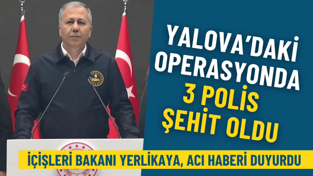 İçişleri Bakanı Ali Yerlikaya, Yalova’da terör örgütü IŞİD’e yönelik düzenlenen operasyonda 3 polisin şehit olduğunu duyurdu. Operasyonda 8 polis ve 1 bekçi yaralanırken, 6 teröristin ölü ele geçirildiği bildirildi.