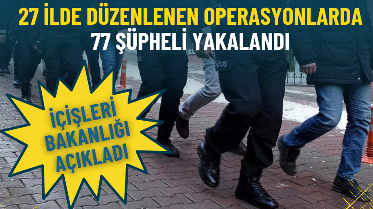 Ankara, Mersin, Eskişehir, Burdur, Kırşehir, Hatay ve Çankırı illeri merkezli olmak üzere Adana, Ağrı, Afyonkarahisar, Amasya, Antalya, Bingöl, Elazığ, Gaziantep, Isparta, Istanbul, Izmir, Kahramanmaraş, Kayseri, Konya, Kütahya, Manisa, Sakarya, Samsun, Sivas ve Şırnak'ta gerçekleştirilen operasyonlarda; haklarında kesinleşmiş hapis cezası ve aranma kaydı bulunan şahısların da aralarında bulunduğu 77 şüpheli yakalandı.