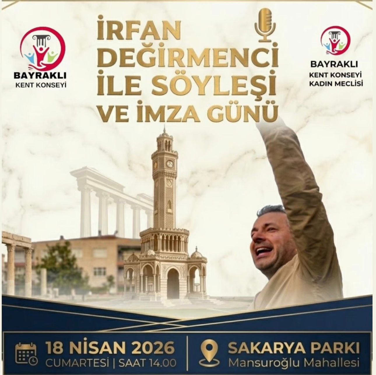 İzmir, nisan ayında önemli bir kültürel etkinliğe ev sahipliği yapmaya hazırlanıyor. Gazeteci ve yazar İrfan Değirmenci, 18 Nisan 2026 Cumartesi günü Bayraklı’da okurlarıyla bir araya gelecek. İrfan Değirmenci ile Söyleşi ve İmza Günü başlığıyla düzenlenecek etkinlik Bayraklı Kent Konseyi ve Bayraklı Kent Konseyi Kadın Meclisi’nin organizasyonuyla gerçekleştirilecek.