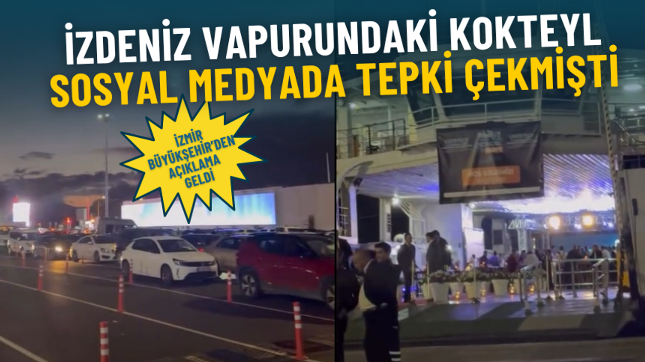 İzmir’de kent içi toplu ulaşımda kullanılan bir vapurda gerçekleşen kokteyl sosyal medyada paylaşılan görüntülerle gündem oldu. Vapura binmek için uzun süre bekleyen vatandaşlar etkinlik sırasında yaşananlara tepki gösterdi. İzmir Büyükşehir Belediyesi İZDENİZ resmi X hesabı üzerinden konuya dair açıklama yaptı.