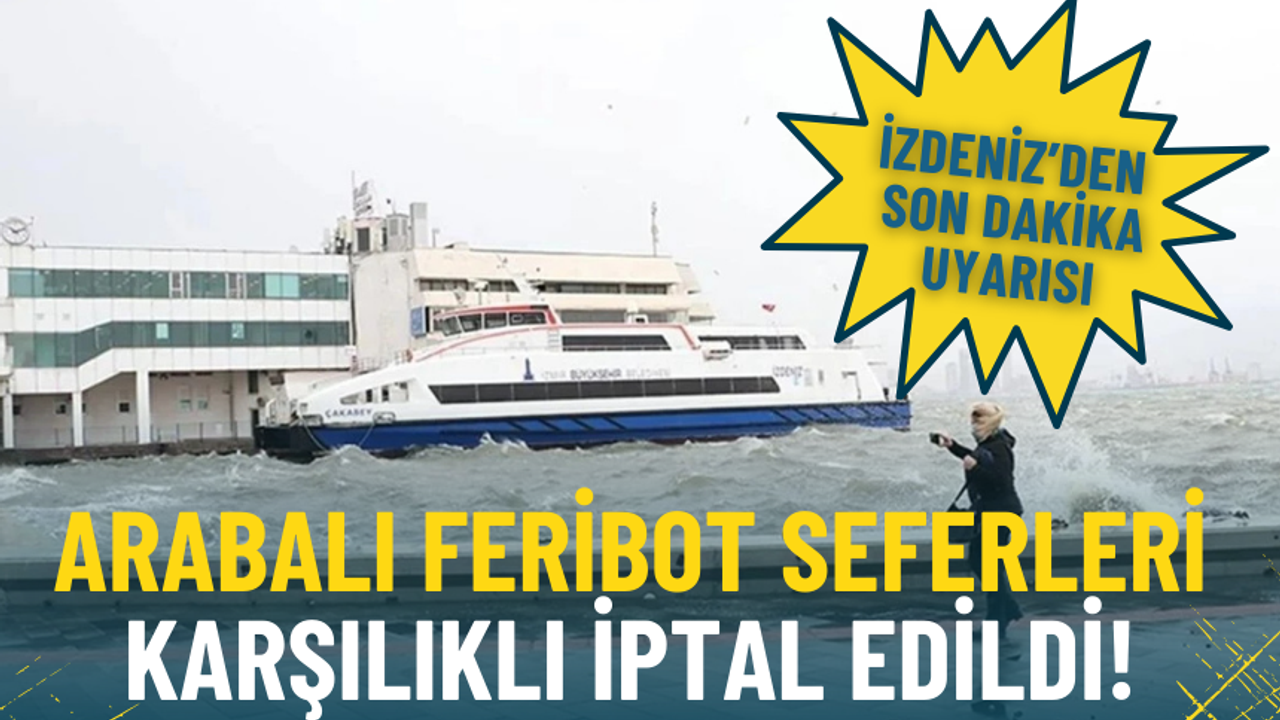 İZDENİZ tarafından Yapılan duyuruda, yolcu gemisi seferlerinin ise program dahilinde uygulanmaya devam edeceği ifade edildi. İZDENİZ tarafından yapılan açıklamada şu ifadeler yer aldı: "Sayın Yolcularımız, Üçkuyular İskelesini etkileyen kuzeydoğu yönlü olumsuz hava ve deniz koşulları nedeni ile saat: 13.10 itibariyle Bostanlı - Üçkuyular hattında Arabalı Feribot seferlerimiz karşılıklı olarak iptal edilmiştir. *Yolcu Gemisi seferlerimiz program dahilinde uygulanmaya devam edecektir. Anlayışınız için teşekkür ederiz.”