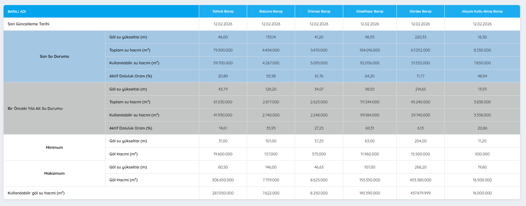 Ürkmez Barajı’nda ise toplam su hacmi 5 milyon 470 bin metreküp, kullanılabilir su miktarı 5 milyon 95 bin metreküp olarak kaydedildi. Aktif doluluk oranı yüzde 61,76 olarak açıklandı.