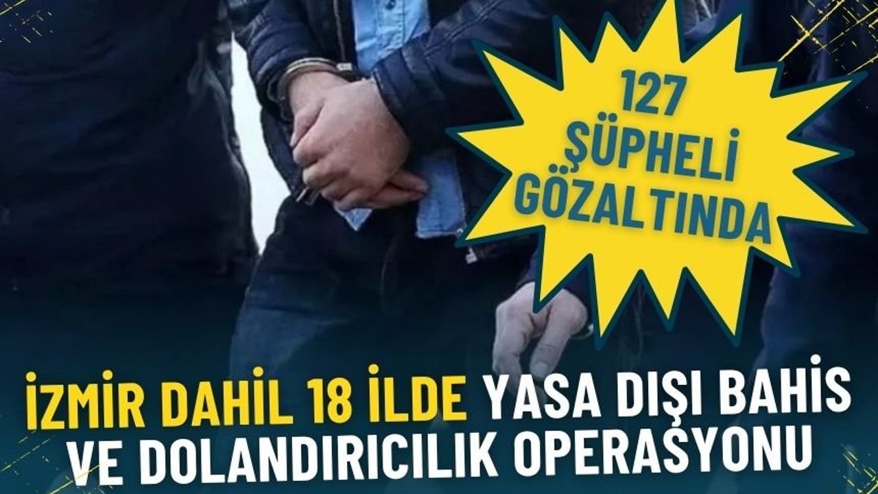 İçişleri Bakanlığı'ndan yapılan açıklamaya göre İzmir dahil 18 il merkezli nitelikli dolandırıcılık ve yasa dışı bahis operasyonlarında 127 şüpheli gözaltına alındı.