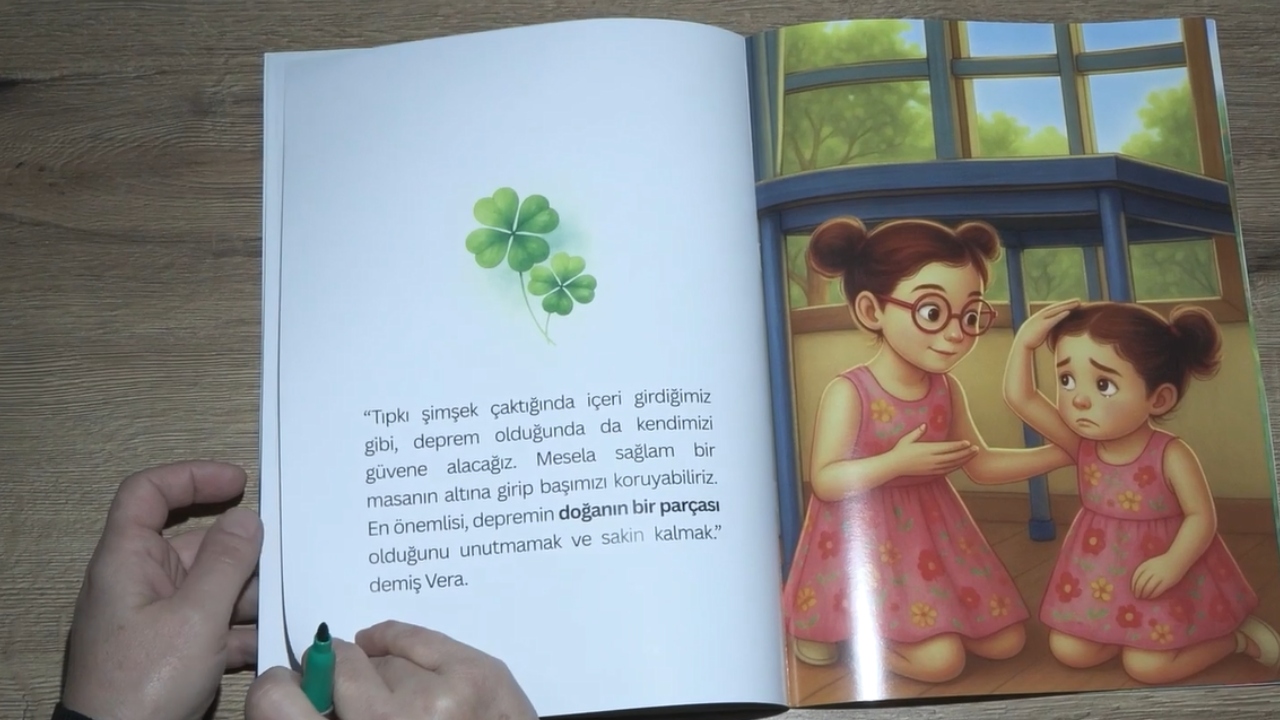 Deprem gerçeğini çocuklara anlatmak, onlarda bu konuda farkındalık oluşturmak isteyen Nilay Yücel, çocuklara hikâye kitabı yazarak ulaşmaya karar verdi.