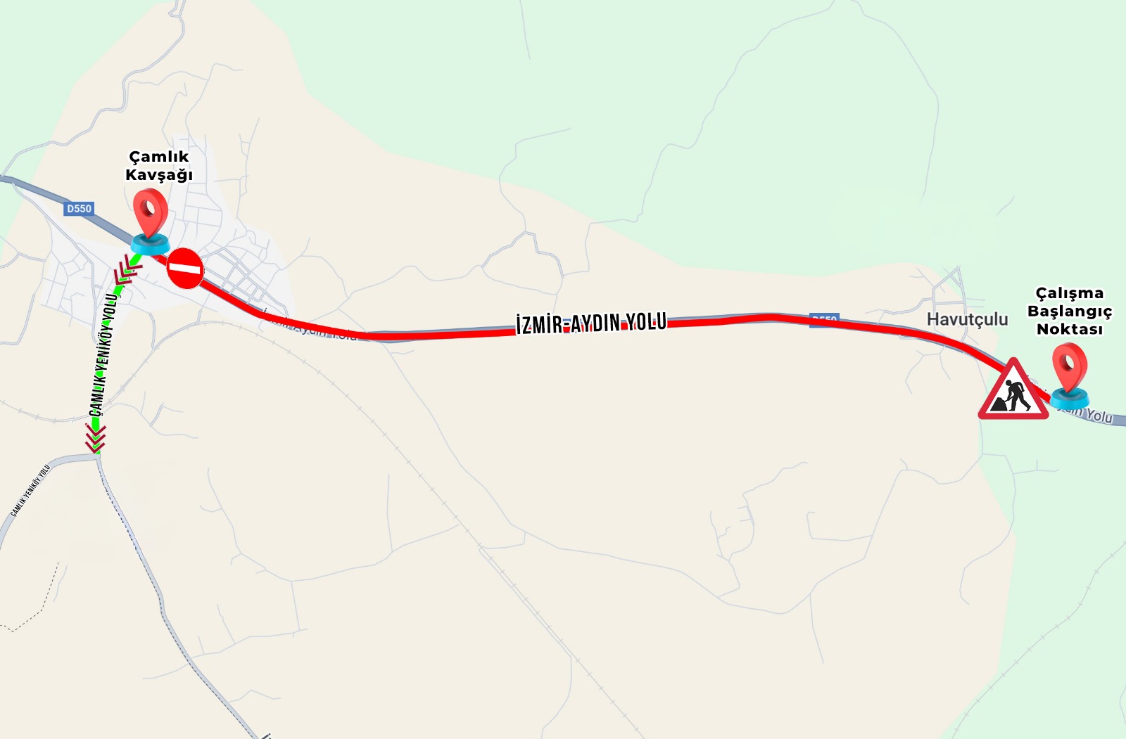Güvenlik nedeniyle çalışmalar süresince saat 13.00 itibarıyla Çamlık Kavşağı’ndan Ortaklar yönüne giden araç trafiği kesilecek. Bu süreçte ulaşımın zorunlu yönlendirme kapsamında Kuşadası ve Selçuk güzergahına aktarılacağını duyuran İzmir Emniyet Müdürlüğü şu uyarıda bulundu: “İzmir-Aydın Devlet Kara Yolu'nun Aydın il sınırından itibaren Ortaklar ilçesi istikametine 1,5 kilometrelik alan içerisinde yol genişletilmesi için 27.10.2025 Pazartesi (bugün) günü saat 13.30-17.00 arasında kontrollü patlatma çalışması yapılacaktır. Trafik tedbirleri kapsamında saat 13.00 itibariyle Çamlık Kavşağı'ndan, Ortaklar ilçesi istikametine olan trafik akımı kesilerek Kuşadası ve Selçuk ilçesi istikametine zorunlu yön olarak verilecektir. Güzergahı kullanacak olan sayın yol kullanıcılarımızın bilgisine sunulur.”