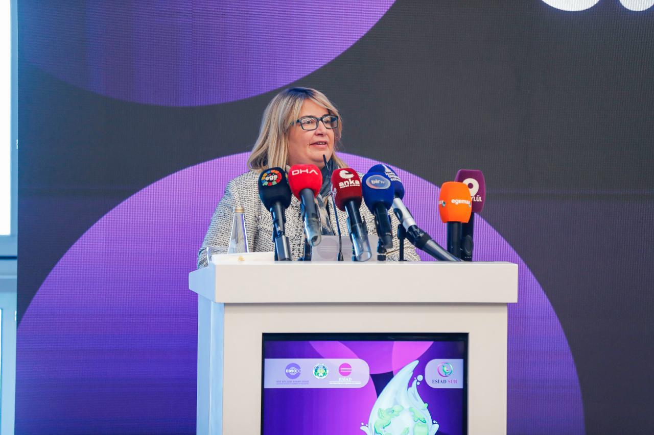Açılış konuşması yapan ESİAD Yönetim Kurulu Başkanı Sibel Zorlu, Türkiye’nin ciddi bir su stresi altında olduğunu söyleyerek “Bu gerçek, suya yaklaşımımızda köklü bir zihinsel dönüşümü zorunlu kılmaktadır. Suyu sadece bir kaynak olarak değil; her damlası ölçülen, planlanan ve yeniden kazanılan stratejik bir unsur olarak görmeliyiz. Su, tek bir kurumun görev ve yetki alanına sığmayacak kadar büyük ve çok boyutlu. Bu nedenle merkezi ve yerel yönetimler, iş dünyası, akademi ve sivil toplumun ortak amaç doğrultusunda eş-güdümlü hareket etmesi kritik önemde” ifadelerini kullandı.