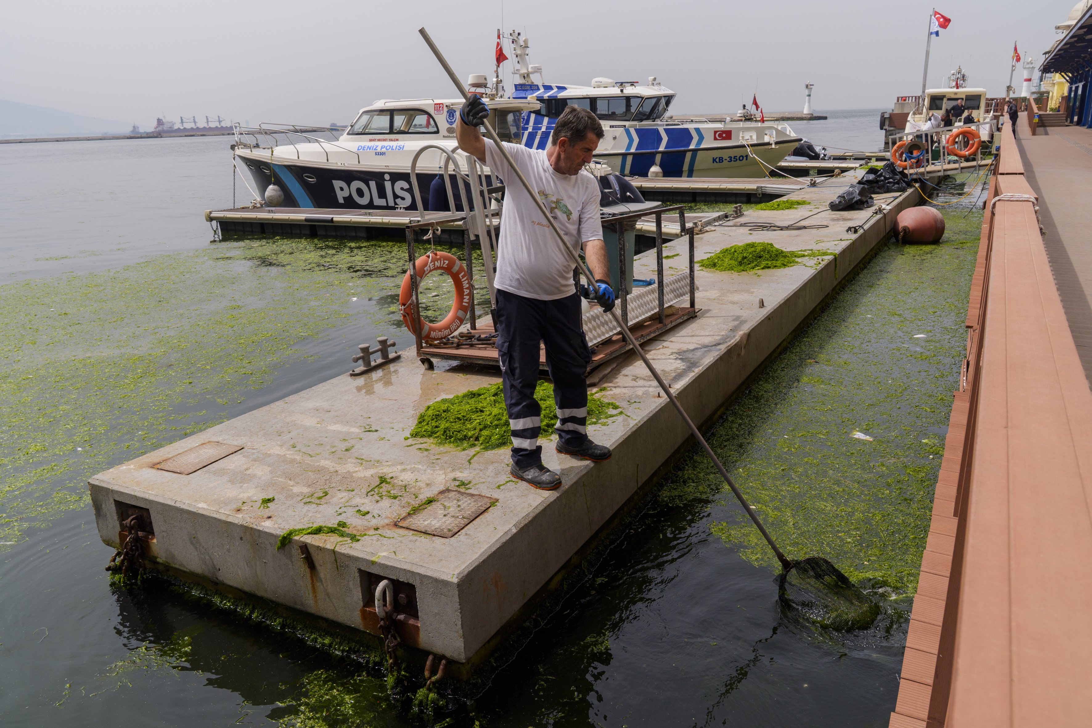 İZMİR KÖRFEZİ'NDE KIYIYA YAKIN NOKTALARDA YOSUN TABAKASI OLUŞTU