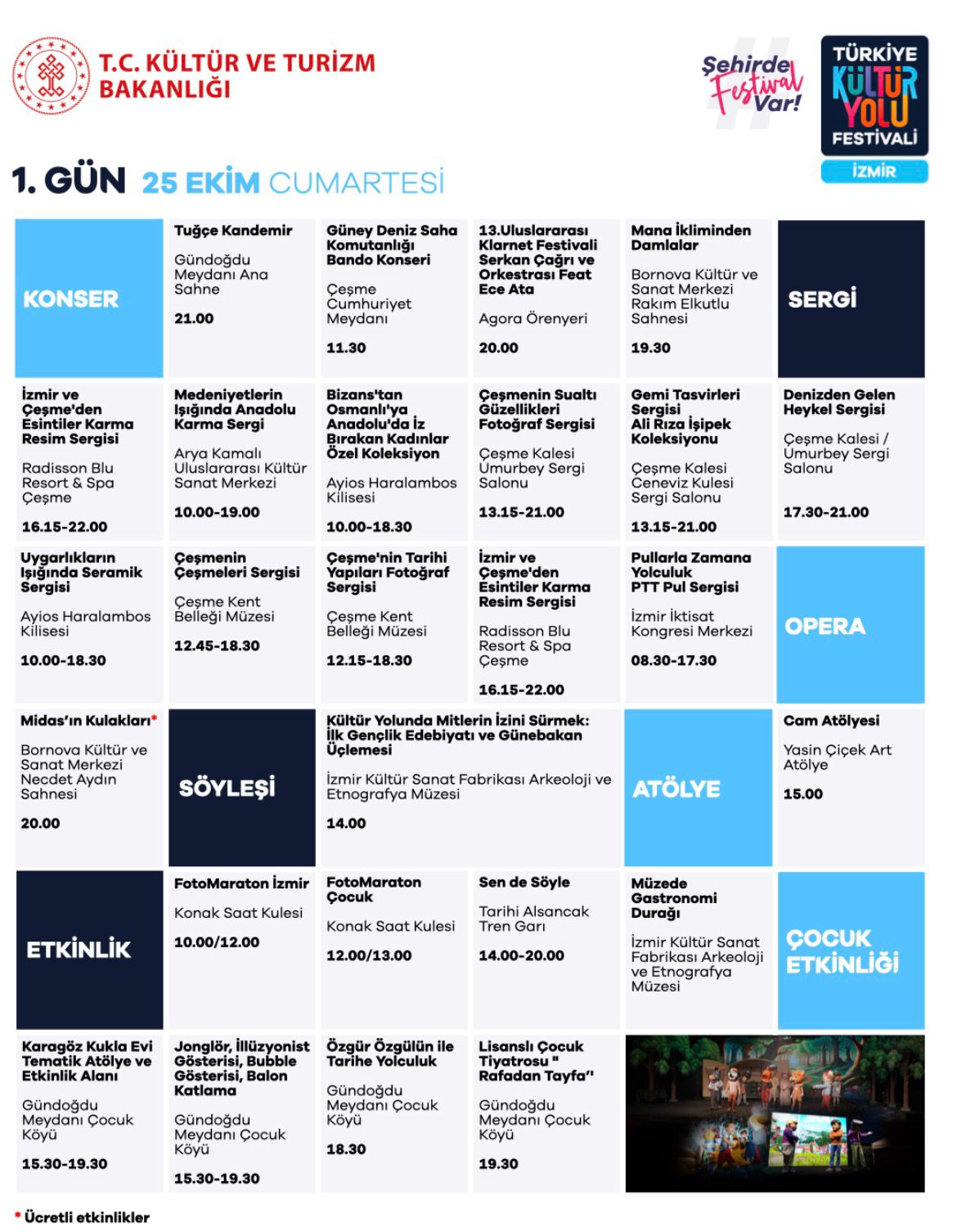 İzmir Kültür Yolu Festivali'nin 25 Ekim 2025 Cumartesi (bugün) günkü programı: