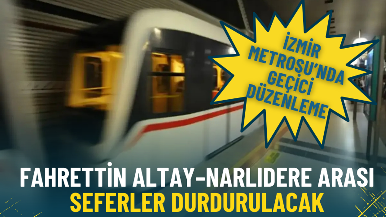 ESHOT Genel Müdürlüğü tarafından yapılan duyuruya göre, İzmir M1 HRD Fahrettin Altay Makas Temini ve Montajı İşi kapsamında 25 Ocak 2026 Pazar ve 1 Şubat 2026 Pazar günleri arasında metro seferleri, Narlıdere Kaymakamlık ile Fahrettin Altay istasyonları arasında hizmet veremeyecek.