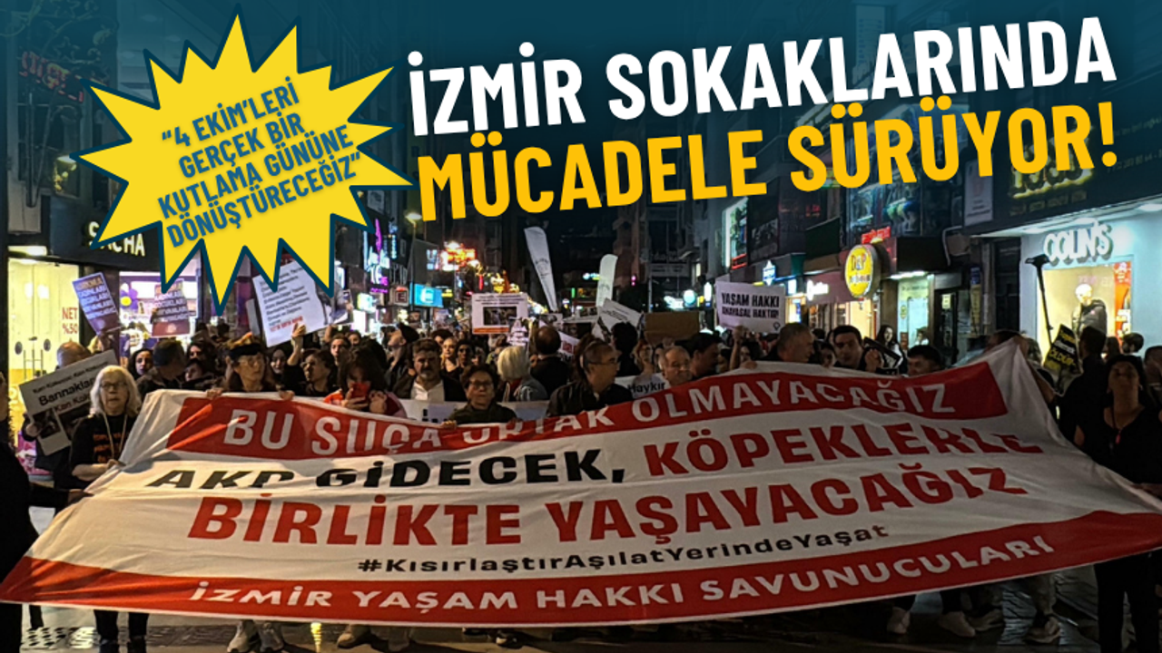 4 Ekim Dünya Hayvanları Koruma Günü dolayısıyla İzmir’de yaşam hakkı savunucuları ve İzmir Barosu üyesi avukatlar, Alsancak Garı önünde toplanarak Kıbrıs Şehitleri Caddesi’ndeki Türkan Saylan Kültür Merkezi önüne yürüdü. Grup burada basın açıklaması yaptı.