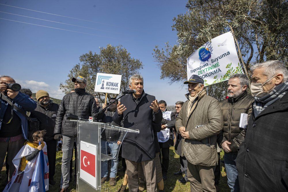 Doğayı savunmaya devam edeceklerini vurgulayan İzmir Büyükşehir Belediye Başkanı Tunç Soyer de şunları söyledi: “Biz korumak ve sahip çıkmak zorundayız. Belediye başkanları olarak asli görevimizin içinde yaşadığımız doğaya sahip çıkmak olduğunu biliyoruz. Ama şunu da biliyoruz ki; doğaya sahip çıkmak, hayata sahip çıkmaktır. Doğaya ve hayata sahip çıkmak aynı zamanda cesaret gerektirir. Bugün İstiklal Marşımızın kabulünün 101. yılı… İstiklal Marşı, Kurtuluş Savaşı destanının yaşandığı günlerde ortaya çıkmış bir marştır. O dönemin acılarını, umutlarını içinde taşır ve ‘Korkma’ diye başlar. Korkmuyoruz, hiçbirimiz korkmuyoruz. Hayatı savunmaya, doğayı savunmaya devam edeceğiz. Biliyoruz ki bunu yapmazsak, hayata sahip çıkmazsak, zeytinimize sahip çıkmazsak birileri onu yok etmek için bombasıyla silahıyla geliyor. Bugün dünyada yaşanan bu büyük savaş hayatı savunmayanların ödediği bedeldir. Biz savunmaya devam edeceğiz. Biz doğamızı korumaya, zeytinimize sahip çıkmaya devam edeceğiz. Tek yapmamız gereken birbirimize önce sahip çıkmayı, birbirimizle uyum içinde bu mücadeleyi sürdürmeyi başarmaktır. Ben bu duygu düşüncelerle çok yakın olduğumuza inanıyorum. Çok, çok yakınız… Doğadan yana, hayattan yana bir iktidarı kurmaya ilk defa bu kadar çok yakınız. Yeter ki, omuz omuza olmaktan, el ele vermekten vazgeçmeyelim.”