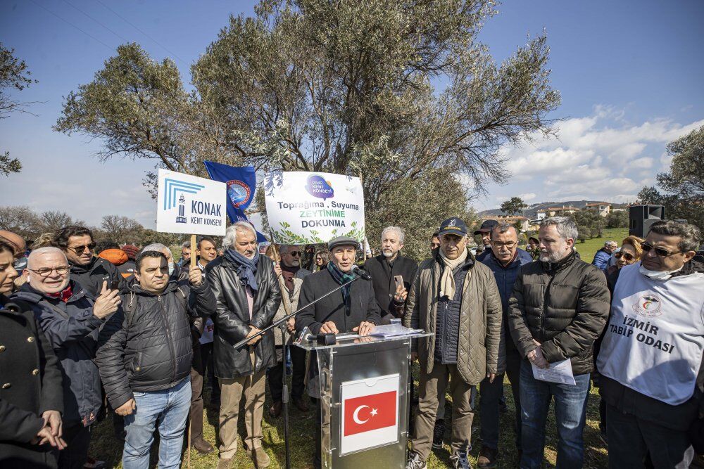 TMMOB İzmir İl Koordinasyon Kurulu Sekreteri Aykut Akdemir ise, “Yönetmeliğin iptaline ilişkin davamızı açtık. Son 20 yıldır tüm korunması gereken alanların ranta teslim edildiği bir dönemi yaşıyoruz. Zeytin üzerinden yürüttüğümüz bu mücadele tüm yaşam alanlarını, korunması gereken alanları ilgilendiriyor. Çeşme Projesi diye icat edilen bir ucubenin bütün tarım alanlarını yok etme, koylarımızı zapt etmesine karşı direncimizi sürdürüyoruz. Tarım alanları için başka ülkelerin milyarlarca dolar harcadığı bir dönemde biz İnciraltı’nı imara açıyoruz. Buna itirazımız var. İnciraltı bir tarım alanıdır, korunmalıdır. Zeytin bizim kutsalımızdır. TMMOB İKK olarak bir kez daha sesleniyoruz; tüm yaşam alanlarımızı ranta teslim etmemek için omuz omuza olacağız” ifadelerini kullandı.