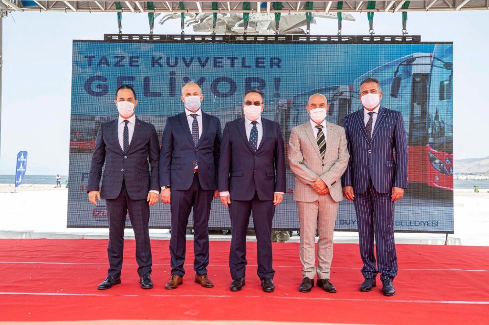 Törene Konak Belediye Başkanı Abdül Batur, Bayraklı Belediye Başkanı Serdar Sandal, Gaziemir Belediye Başkanı Halil Arda, Menderes Belediye Başkanı Mustafa Kayalar, Kemalpaşa Belediye Başkanı Rıdvan Karakayalı, İzmir Büyükşehir Belediyesi Başkan Vekili Mustafa Özuslu, İzmir Büyükşehir Belediyesi Genel Sekreteri Dr. Buğra Gökçe, ESHOT Genel Müdürü Erhan Bey, İZULAŞ Genel Müdürü Arda Şekercioğlu, meclis üyeleri, belediye bürokratları ve TEMSA yetkilileri katıldı.