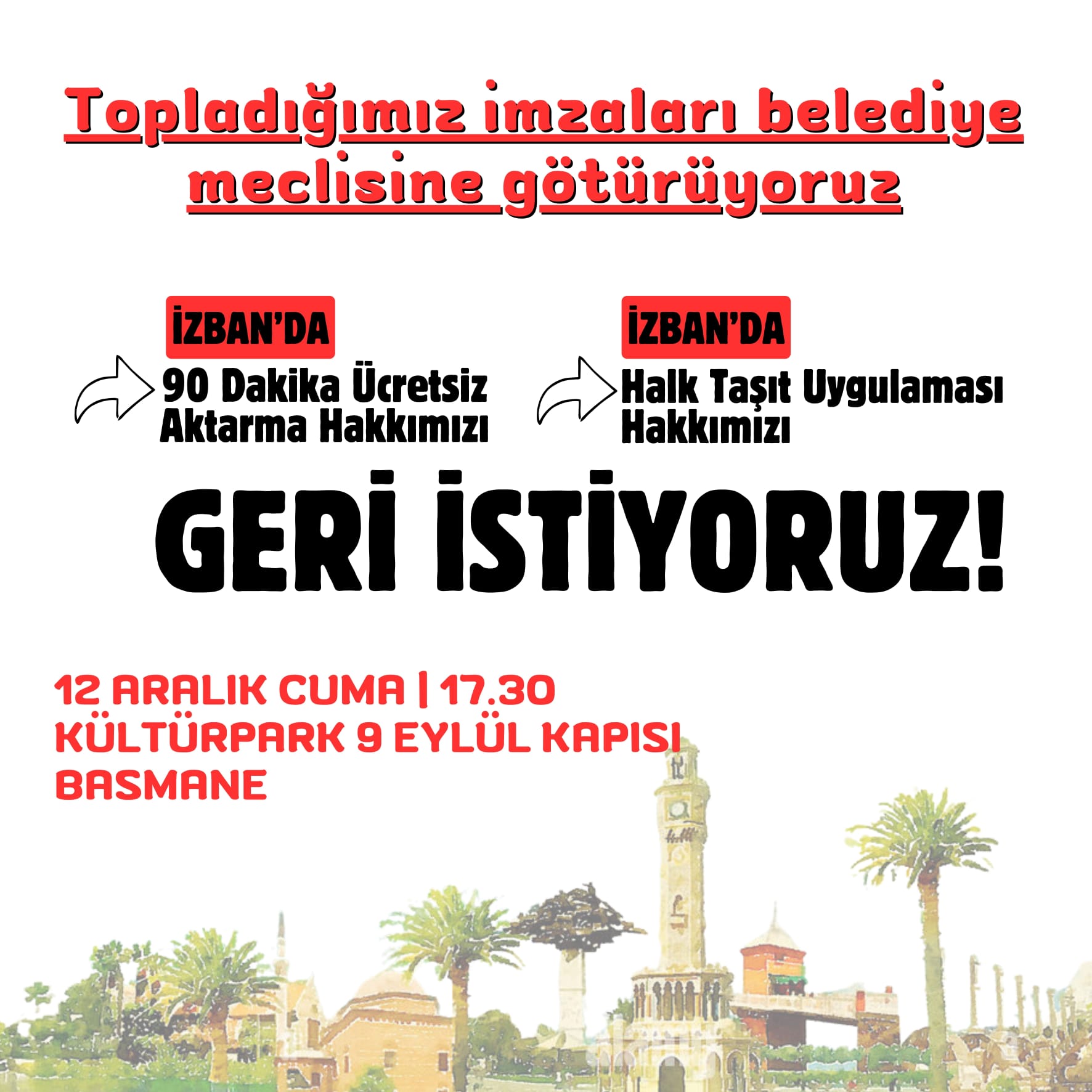 Kampanya, İZBAN’da aktarma hakkının geri getirilmesi, halk taşıt uygulamasının yeniden devreye alınması ve artı para sisteminin kaldırılması talepleri üzerine başlatılmıştı. Halkevleri, vatandaşların ulaşım maliyetlerinde yaşadığı artış ve sistemdeki değişikliklerin günlük yaşama etkileri nedeniyle geniş katılımlı bir imza çalışması yürüttü.