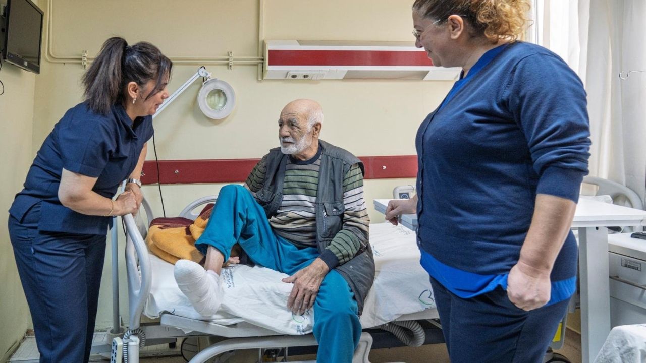 Diyabet hastası 83 yaşındaki Mustafa Kafa, hastalığına bağlı diyabetik ayak enfeksiyonu nedeniyle Artvin’de çeşitli hastanelere başvurdu. Kafa’ya diyabetik ayak ampütasyonu önerilmesine rağmen, farklı bir tedavi umuduyla Eşrefpaşa Hastanesi’ne geldi. Enfeksiyon, dahiliye, ortopedi ve plastik cerrahi birimlerinin ortak çalışmasıyla 90 gün boyunca tedavi edilen Kafa, sağlığına kavuşarak taburcu edildi.