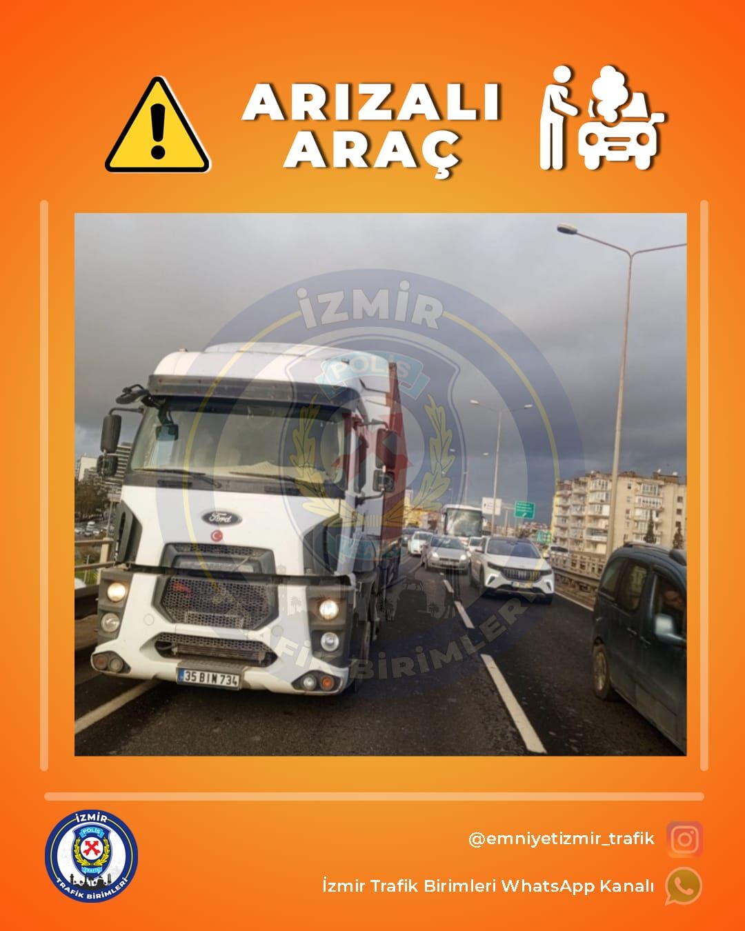 Arızalı aracın yol dışına alınması için çalışmaların sürdüğü belirtilen İzmir Emniyet Müdürlüğü Trafik birimleri tarafından yapılan açıklama şöyle: