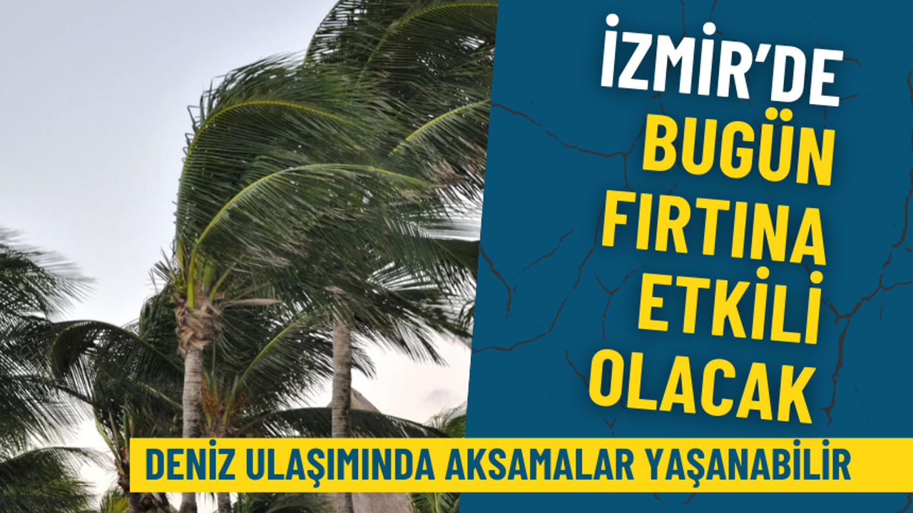 Meteoroloji Genel Müdürlüğü’nün yayımladığı son hava tahminlerine göre İzmir’de bugün fırtına etkili olacak. İzmir Valiliği, Meteoroloji'nin uyarısını paylaşarak özellikle deniz ulaşımında yaşanabilecek olumsuzluklara dikkat çekti.