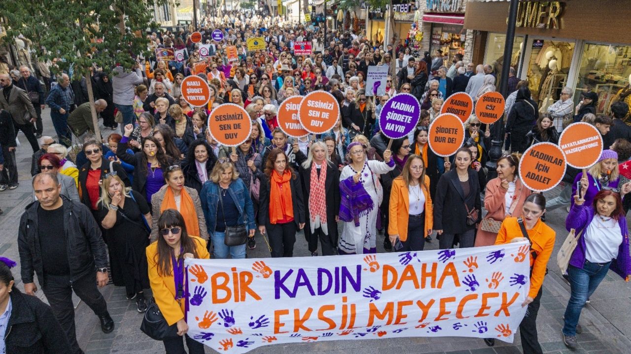 Başkan Yıldız Ünsal’ın sembolü tamamlamasının ardından ‘Şiddete Karşı Ses Çıkar’ yürüyüşü için start verildi. Yürüyüşe; Cumhuriyet Halk Partisi Karşıyaka İlçe Başkanı Levent Güçlü, CHP Karşıyaka Kadın Kolları Başkanı Safigül Çalışkaneli, belediye meclis üyeleri, muhtarlar, sivil toplum kuruluşlarının temsilcileri ve vatandaşlar katıldı. Belediye önünde bir araya gelen katılımcılar, ellerinde “Sesimizi sen de duy”, “Kadına şiddete hayır”, “Şiddete dur de”, “Haklı şiddet yoktur” gibi sloganların yer aldığı döviz ve pankartlarla Çarşı içinden geçerek Atatürk, Annesi ve Kadın Hakları Anıtı’na ulaştı. Anıt çevresinde kenetlenen katılımcılar, dayanışma zinciri oluşturarak kadına yönelik şiddete karşı birlik ve ortak mücadele mesajı verdi. Dayanışma zincirine İyi Parti İzmir İl Başkanı Ülkü Doğan ve İyi Parti Karşıyaka İlçe Başkanı Yetkin Hafızoğlu da katıldı.