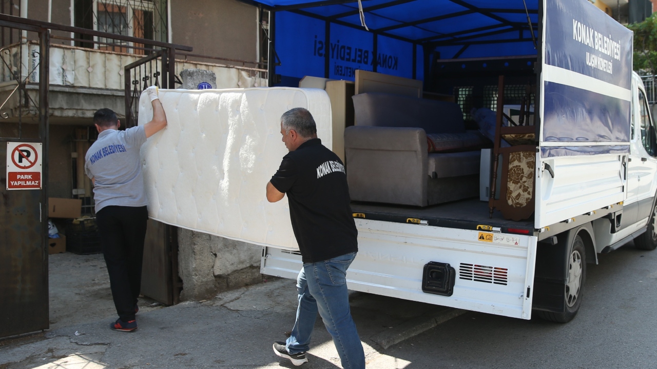 Konak Belediyesi’nin, Konaklı komşular arasında evden eve dayanışma sağlayan uygulamasıyla yardımsever vatandaşlar kullanılabilir durumdaki ikinci el eşyalarını bağışlıyor, ihtiyaç sahipleri evlerindeki eksikleri tamamlıyor.