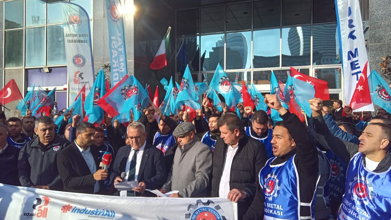 Türk Metal Sendikası İzmir ve Manisa Şubeleri, İzmir’de MESS binası önünde bir araya gelerek bir basın açıklaması yaptı. Açıklamaya Türk-İş Ege Bölge Temsilcisi Hayrettin Çakmak da katılarak destek verdi. Emekçiler adına açıklamayı Türk Metal Sendikası Manisa 1 Nolu Şube Başkanı Ercan Dereli okudu.