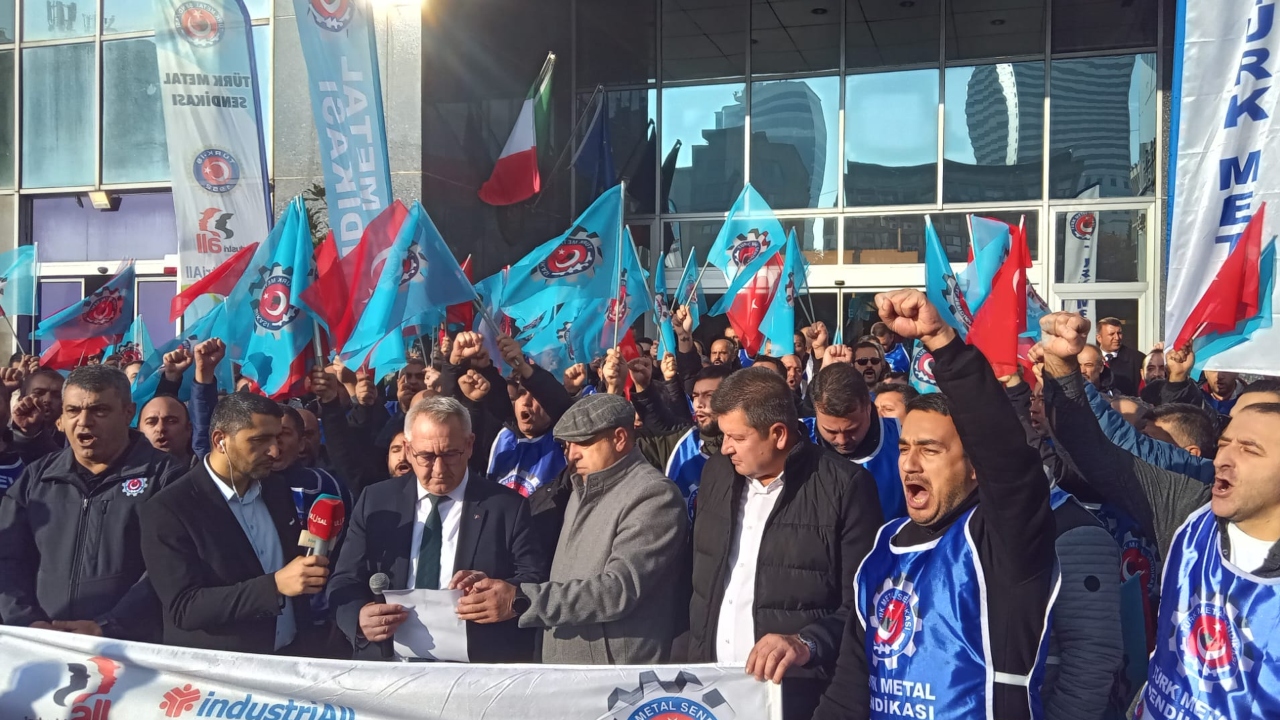 Emeğimizin ve alın terimizin hakkını savunmaktan asla vazgeçmeyen sendikamız ücret ve sosyal haklara ilişkin yapılan bu kabul edilemez teklifler üzerine masadan kalkarak uyuşmazlık tutanağını tuttu. Oysa sendikamız Türk Metal, ülke gerçeklerini, sanayimizin içinde bulunduğu koşulları üyelerimizin yaşam şartlarını her şeyi ama her şeyi değerlendirerek üyelerimizin de onayı ile üzerinde uzlaşılabilecek bir taslak vermiş, masaya da uzlaşmak için oturmuştu. Ancak muhatabımızdan aynı yaklaşımı göremedik. Biz, yeni hakları konuşalım derken onlar kazanılmış haklarımızı elimizden almak istediler. Buradan işveren sendikası MESS’e bir kez daha sesleniyoruz; Türk Metal olarak, yoksulluğa, geçim sıkıntısına asla evet demeyeceğiz. Hakkımızı alana kadar mücadele edeceğiz. Biz bugüne kadar üzerimize düşeni yaptık. Ürettik ve kazandırdık. Şimdi kazanmak istiyoruz. Karlarına kar katanlara, ihracat şampiyonu olanlara, yaptığımız katkının karşılığını istiyoruz. Buradan işverenlerimize de seslenmek istiyoruz; üretim rekoru kırınca övdüğünüz, kalite ödülü alınca sırtını sıvazladığınız, kar rekoru kırdırınca gurur duyduğunuz Türk Metalcileri, sıra zamma gelince görmez oldunuz. Ancak biz, kazanılmış haklarımızı korumaya, insanca yaşamaya yetecek kadar bir zam almaya kararlıyız” ifadelerini kullandı.