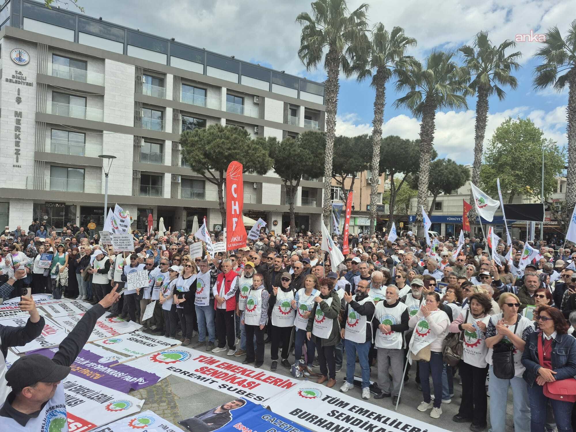 İzmir’in Dikili ilçesinde düzenlenen Bölge Mitingi’nde emekliler, düşük emekli aylıkları, hayat pahalılığı, sosyal hak kayıplarını protesto etmek ve intibak düzenlemesi talepleriyle meydanları doldurdu. İzmir’de “Sefalet zulmüne son” sloganıyla düzenlenen Dikili Bölge Mitingi’nde emekliler, geçim sıkıntısı ve sosyal hak kayıplarına karşı taleplerini dile getirdi. Emekliler, Bülent Ecevit Meydanı’ndan Atatürk Meydanı’na yürüdü. Yoğun katılımla gerçekleşen mitingde emekliler, düşük maaşlara, hayat pahalılığına ve “sefalet zammı” olarak nitelendirdikleri düşük artışlara tepki gösterdi.