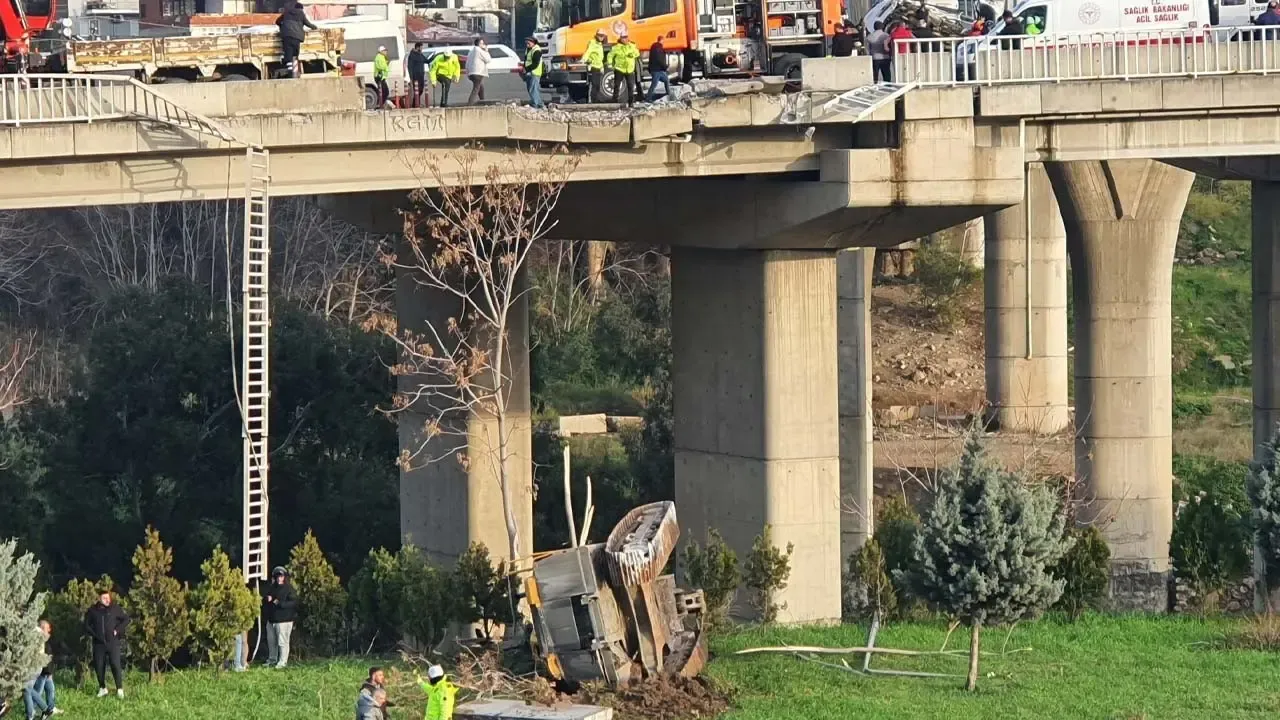 İzmir’in Konak ilçesinde, freni boşalan iş makinesi yüklü bir TIR, önünde seyreden kamyonete çarparak kontrolden çıktı ve viyadükten aşağı düştü. Çarpmanın etkisiyle kamyonet viyadükte asılı kaldı.