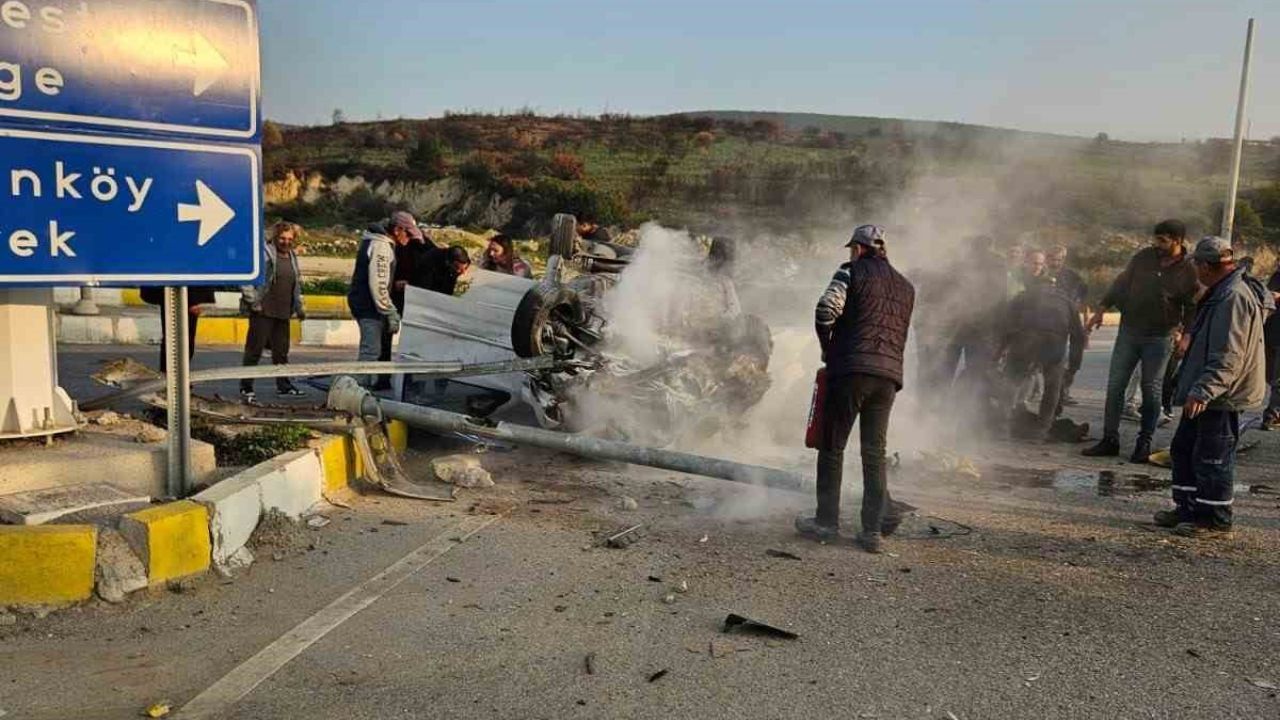 Kaza, saat 16.45 sıralarında İzmir’in Menemen ilçesinde bulunan Gerenköy Kavşağı’nda meydana geldi. Edinilen bilgilere göre, 30 yaşındaki Döndü C.’nin kullandığı 35 ARV 980 plakalı otomobil, sürücünün direksiyon hakimiyetini kaybetmesi sonucu kontrolden çıkarak refüje çarptı ve takla atarak ters döndü. Kazanın etkisiyle araçta yolcu olarak bulunan sürücü Döndü C. ile araçta yolcu olarak bulunan kaynanası Fadime C. (61) yaralandı.