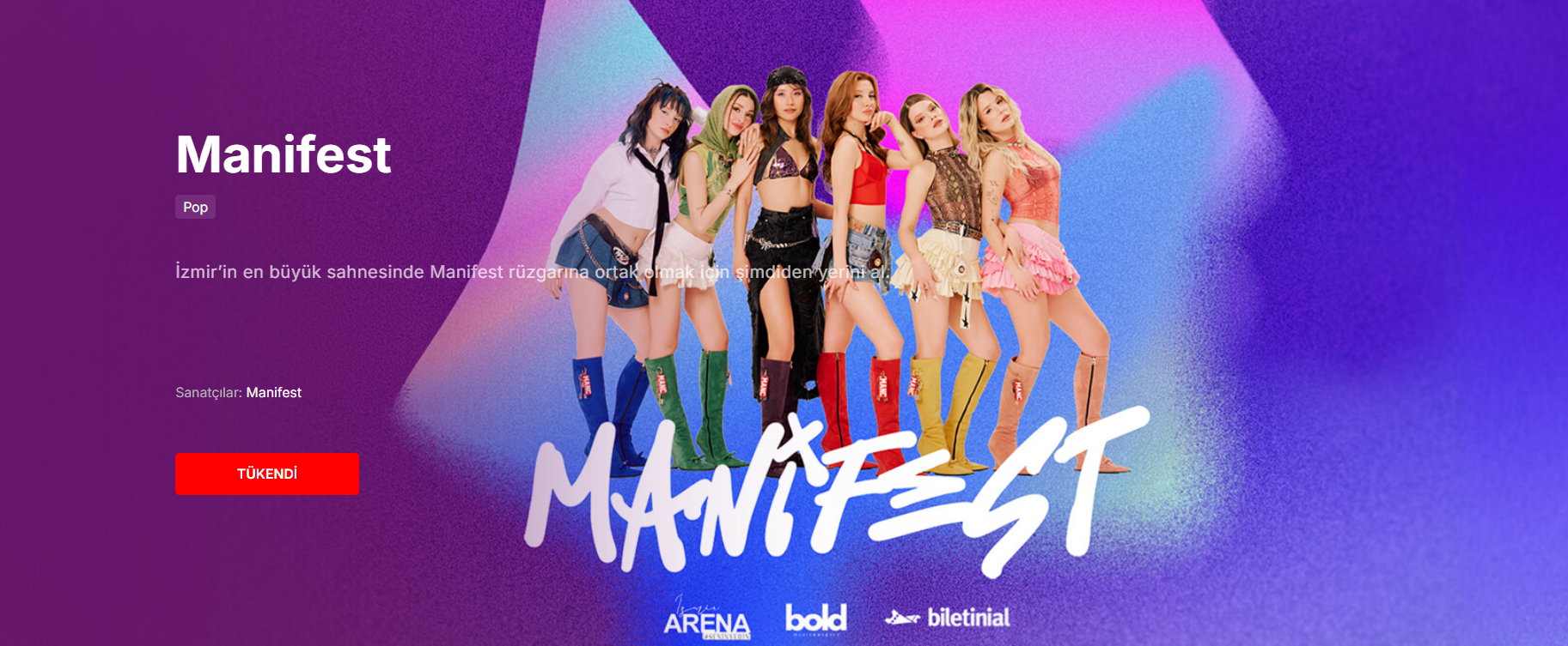 İzmir’de 3 Mayıs 2026’da gerçekleşecek Manifest konseri için satışa sunulan biletler, satışın başlamasıyla birlikte dakikalar içinde tükendi. Yüksek fiyatlı kategorilere rağmen tüm biletlerin kısa sürede tükenmesi etkinliğe olan yoğun ilgiyi ortaya koydu.