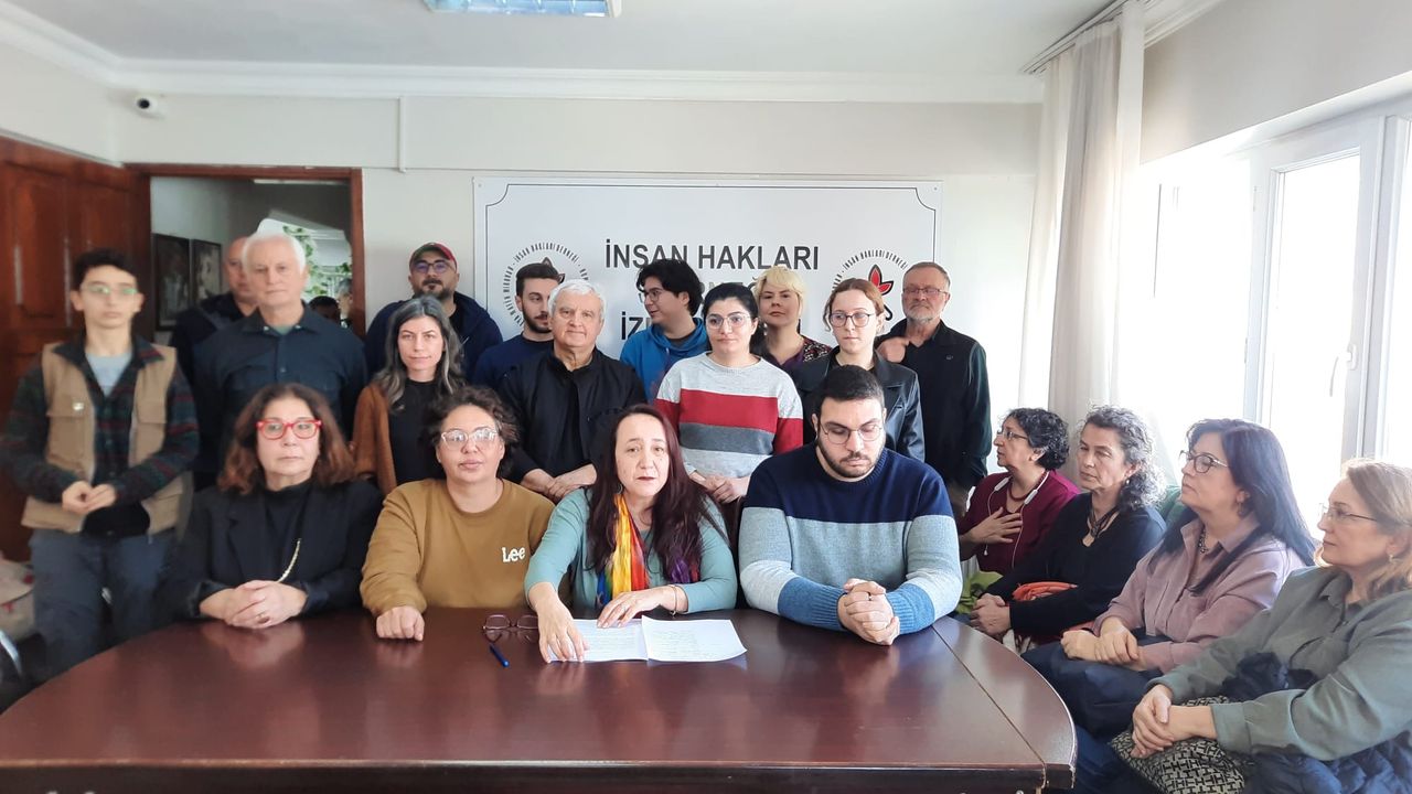İzmir’de faaliyet gösteren hak savunucuları, son dönemde LGBTİ+’lara, derneklerine ve aktivistlerine yönelik artan gözaltı, tutuklama ve kapatma davalarına karşı 20 Kasım Nefretle Mücadele Derneği öncülüğünde İnsan Hakları Derneği (İHD) İzmir Şubesi’nde basın açıklaması düzenledi. Çok sayıda kurumun imzasının bulunduğu metni Ebru Dinçel okudu.