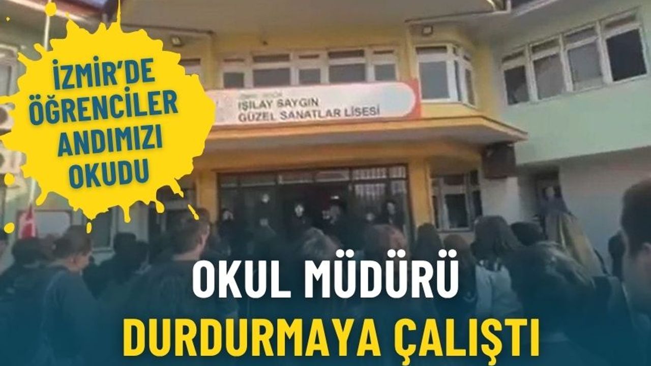 İzmir Buca'da Işılay Saygın Güzel Sanatlar Lisesi’nde 10 Kasım’ın ara tatile denk gelmesi sebebiyle okullar, Cumhuriyetimizin kurucusu Gazi Mustafa Kemal Atatürk’ün anma törenlerini 8 Kasım’da gerçekleştirdi. İzmir Buca'da Işılay Saygın Güzel Sanatlar Lisesi’nde öğrenciler törende İstiklal Marşı’nı ardından “Andımız”ı okumaya başlayınca, okul müdürü sahneye çıkarak engel olmaya çalıştı. Öğrenciler ise müdürün tepkisine aldırmadan “Andımız”ı okumaya devam etti.