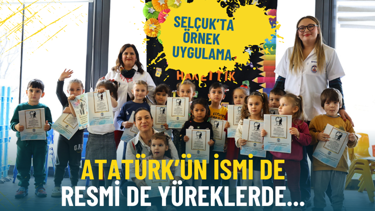 Efes Selçuk Belediyesi Kadın ve Aile Hizmetleri Müdürlüğü bünyesinde faaliyet gösteren İsabey Çocuk Bakım Yurdu, 14 Mayıs Şen Çocuk Gelişim Merkezi ve Belevi Şen Çocuk Gelişim Merkezi’nde ücretsiz hizmet alan çocuklara Atatürk görselinin yer aldığı özel bir gelişim raporu belgesi verildi. Belgede “Okuluma koşuyorsam, özgürce okuyorsam senin sayende… Teşekkürler Atam!” ifadesi yer aldı.