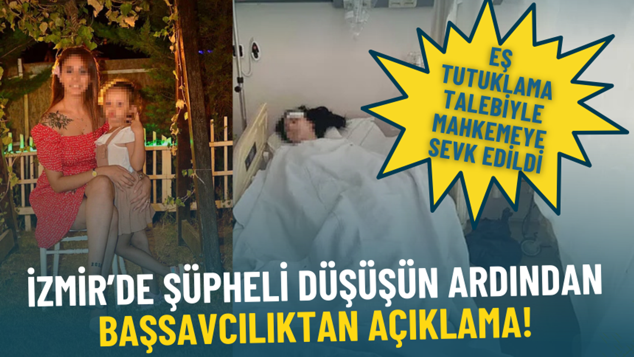 İzmir’in Karabağlar ilçesinde bir kadının apartmanın 4’üncü katından düşerek ağır yaralanmasıyla ilgili yürütülen soruşturmada yeni bir gelişme yaşandı. İzmir Cumhuriyet Başsavcılığı tarafından yapılan açıklamada, şüpheli eşin gözaltına alınarak tutuklama talebiyle mahkemeye sevk edildiği bildirildi.