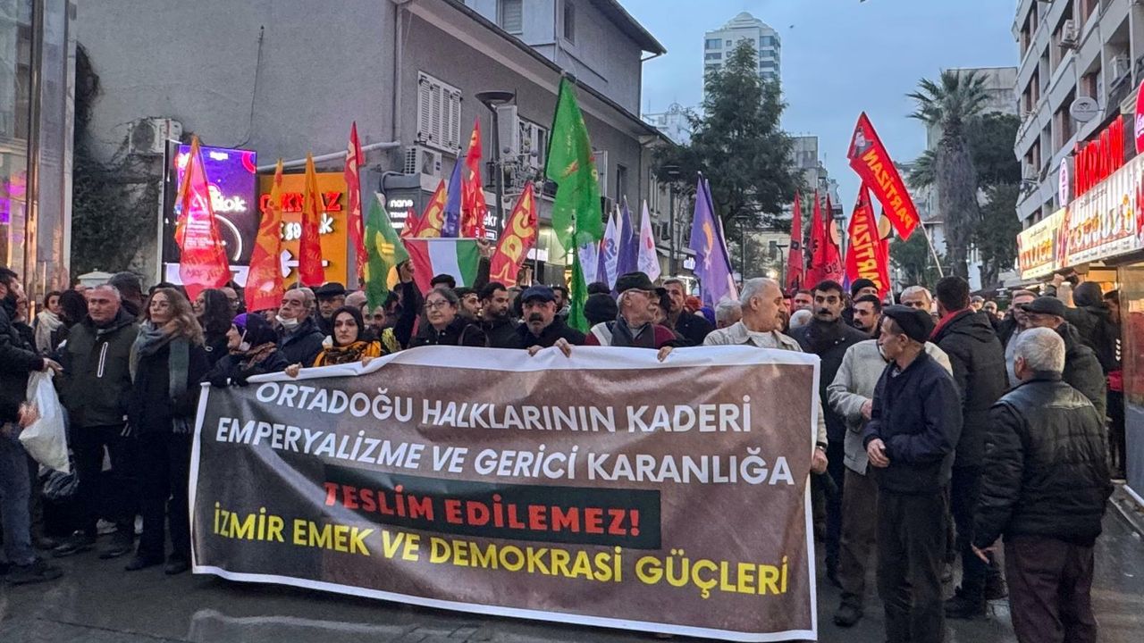 İzmir Emek ve Demokrasi Güçleri, Suriye’de hükümet güçleri ile Suriye Demokratik Güçleri (SDG) arasında yaşananlara tepki göstermek amacıyla Alsancak Kıbrıs Şehitleri Caddesi üzerinde toplandı. “İşgale, kuşatmaya, katliama hayır! Gör, duy Rojava için ses ol!” çağrısıyla bir araya gelen grup, Emniyet’in Türkan Saylan Kültür Merkezi önüne yürüyüşe izin vermemesi üzerine yapılan müzakerelerin ardından bulundukları alanda basın açıklaması yaptı. İzmir Emek ve Demokrasi Güçleri adına basın açıklamasını İzmir Barosu Genel Sekreteri Zöhre Dalkıran okudu. Basın açıklamasında şöyle denildi: