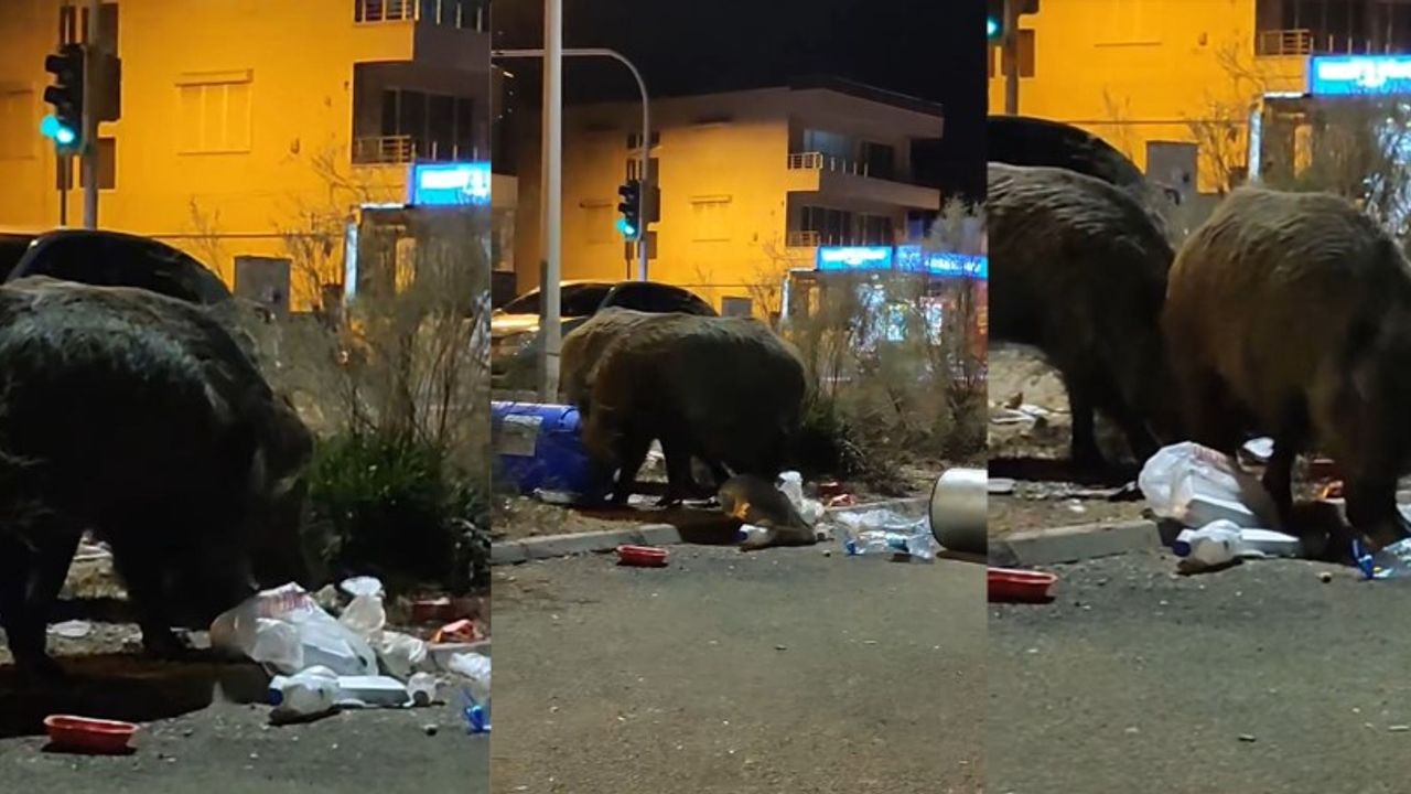 Çöp yığınlarını karıştırarak yiyecek arayan domuzlar, iri cüsseleriyle dikkat çekti. Sosyal medyada videonun paylaşılması üzerine bazı vatandaşlar "Şunlara bak fil kadar olmuşlar" yorumlarında bulundu.