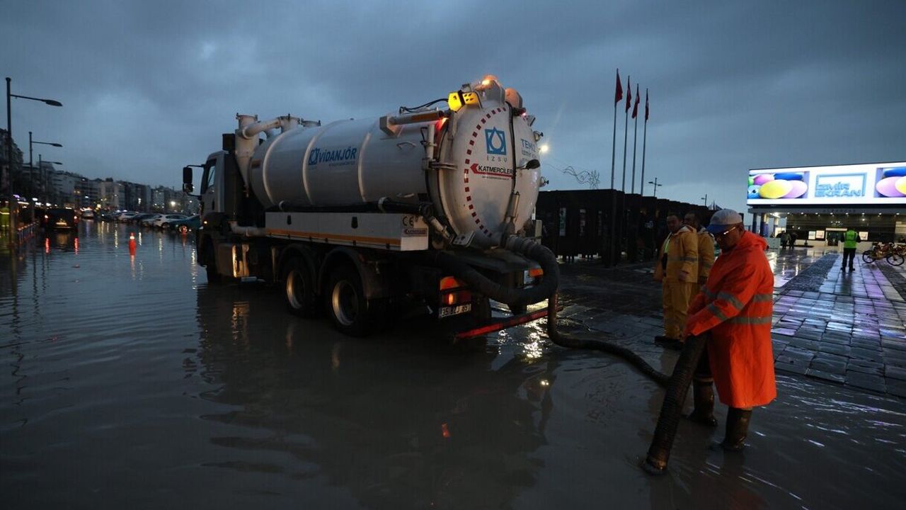 Meteoroloji Genel Müdürlüğü’nün uyarılarının ardından İzmir genelinde etkisini artıran yağış ve olumsuz hava koşullarına karşı İzmir Büyükşehir Belediyesi tüm birimleriyle sahada görev yapıyor. Olası su baskınları, deniz kaynaklı birikintiler ve ulaşım aksamalarının önüne geçmek amacıyla denizle ilişkili bölgelerde kontroller sıklaştırılırken, Bostanlı ve Pasaport ile Alsancak Kordon çevresi yakından izleniyor. İZSU ekipleri, deniz kotunun yükselmesi nedeniyle yolda biriken suların denize deşarj edilememesi üzerine, deniz seviyesi normale dönene kadar çalışmalarını aralıksız sürdürecek.