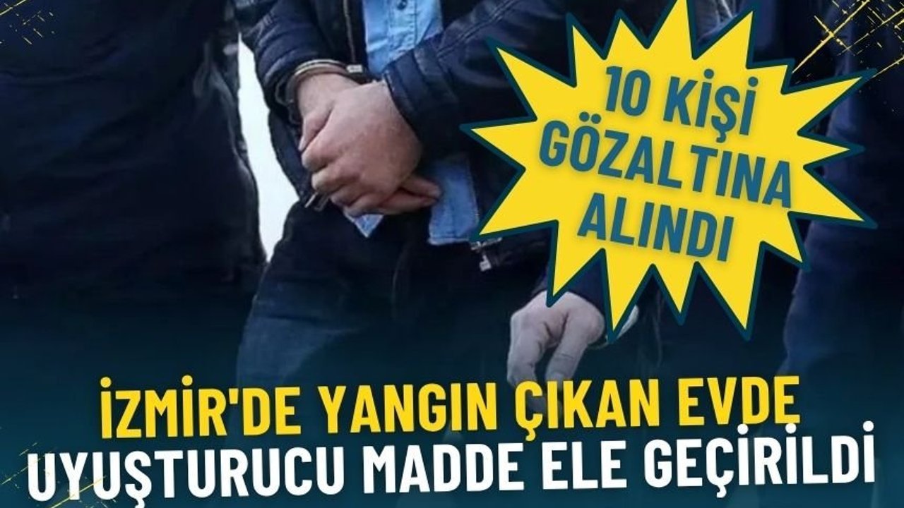 İzmir'in Karabağlar ilçesinde yangın çıkan evde uyuşturucu madde ele geçirildi, 10 şüpheli gözaltına alındı.
