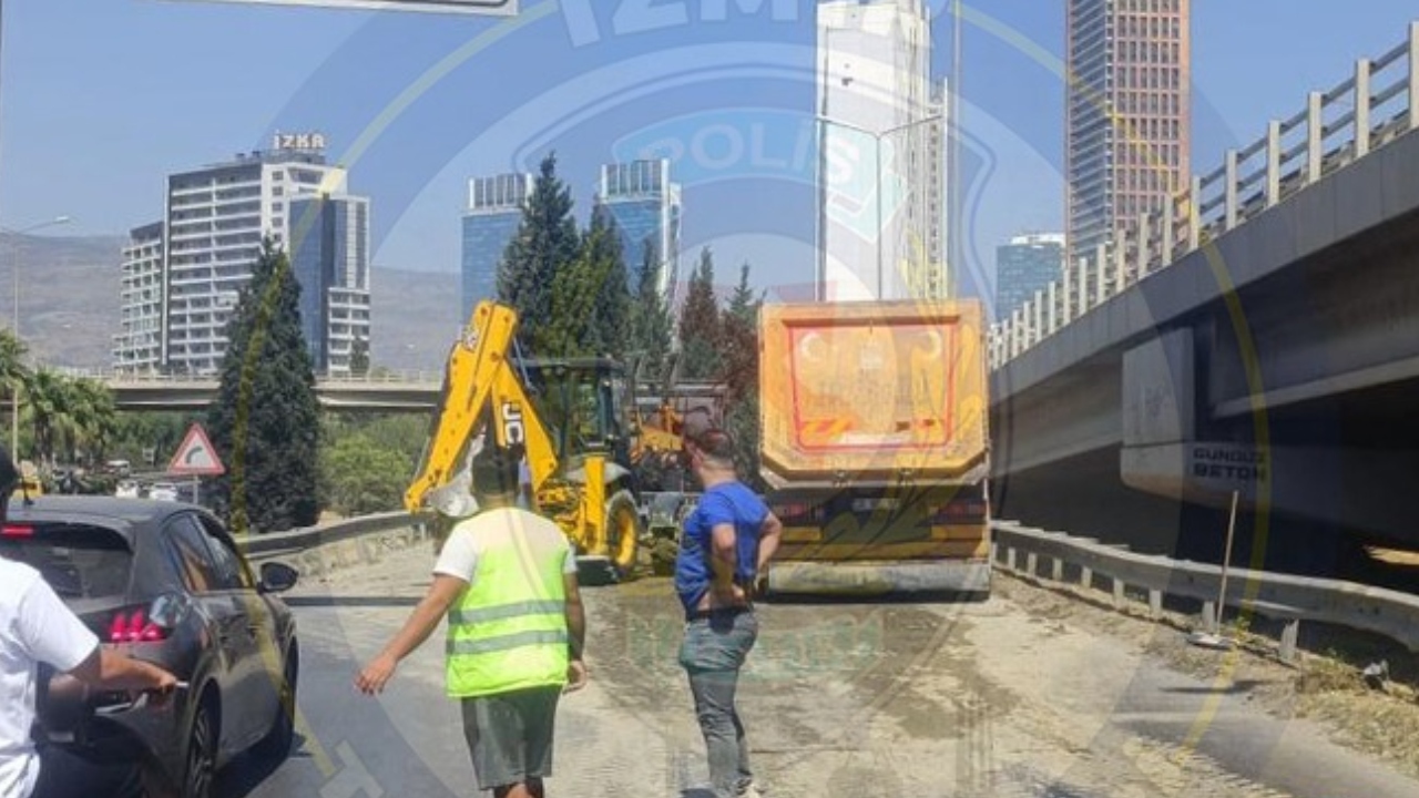 İzmir’de yola inşaat malzemesi döküldü: Güzergah kilitlendi, temizlik çalışmaları sürüyor