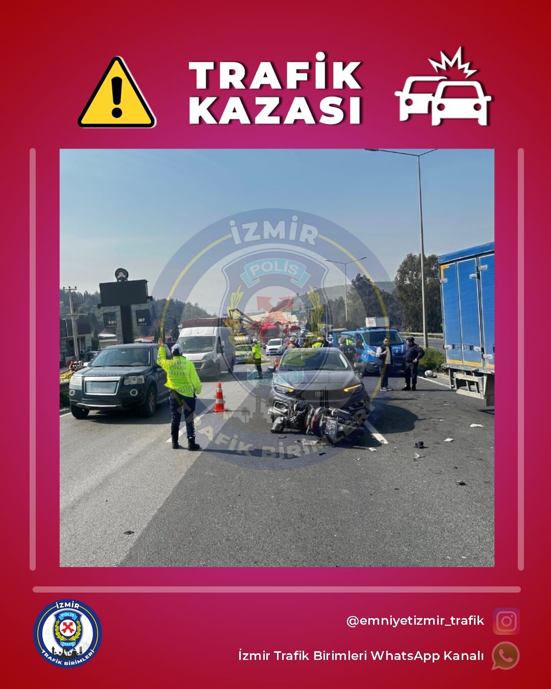 İzmir Emniyet Müdürlüğü tarafından yapılan açıklamada zincirleme kazanın Ankara Caddesi üzerinden Turgutlu istikametine, Belkahve rampalar girişinde meydana geldiği bildirildi. Kazaya karışan araçlar nedeniyle sol ve orta şeritler geçici olarak trafiğe kapatıldı. Trafik akışı sağ şeritten sağlanıyor.