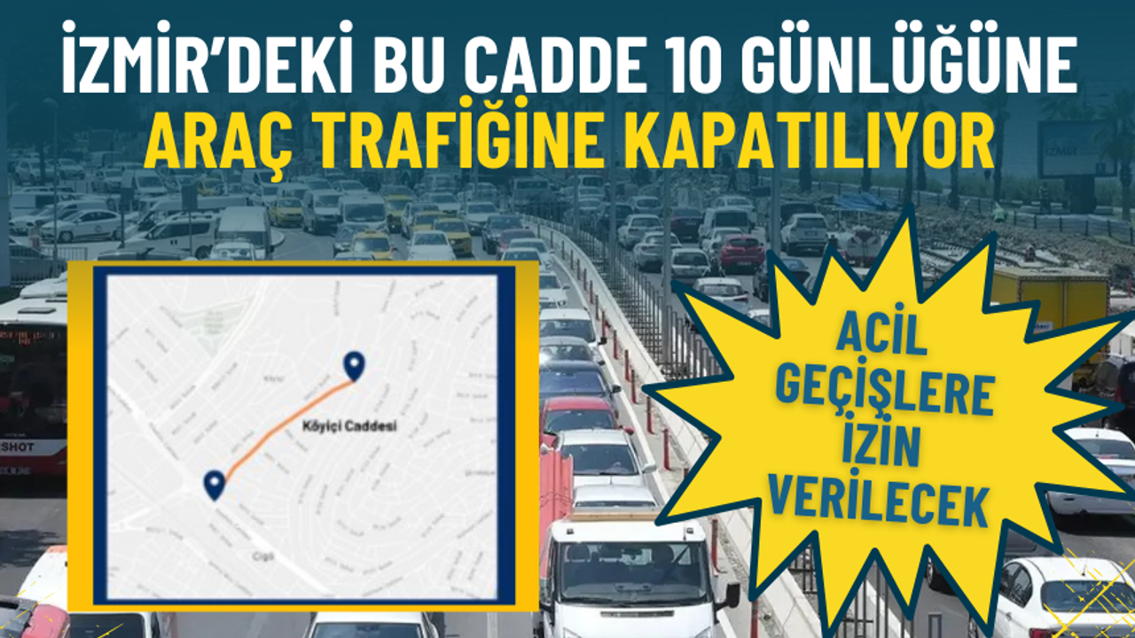 İzmir’de yürütülen asfalt serim çalışmaları nedeniyle Çiğli’nin bir caddesinde trafik düzenlemesine gidiliyor. Çalışmalar süresince belirlenen güzergah araç trafiğine kapatılacak. Aynı zamanda trafik acil durumlarda geçişlere izin verilecek ve yapılara erişim sağlanacak şekilde düzenlendi. İşte İzmir'deki sürücüleri yakından ilgilendiren o duyurunun detayları...