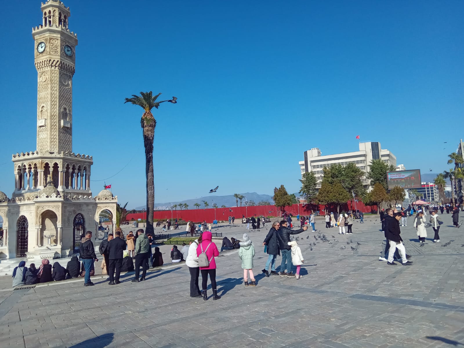 1901 yılında inşa edilen Saat Kulesi, İzmir’in simgesi. Ancak onu yaşayan bir mekâna dönüştüren, etrafındaki hayat. Güvercinler, fotoğraf çekenler, çocuklar ve kuş yemi satıcıları bu hayatın parçaları. Satıcı, kuşlarla kurulan ilişkiyi de şöyle özetliyor: “Bunlar bizim kuşlarımız gibi oldu. Sabah gelmezsek bizi arar gibiler. Aç kalmasınlar diye erken geliyoruz. İnsan da kuş da alışıyor birbirine.”