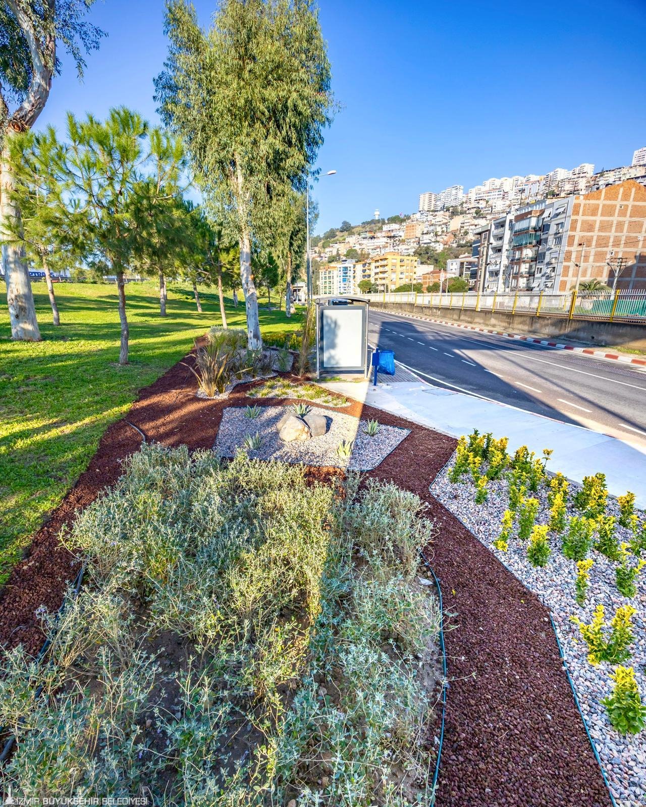 İzmir Büyükşehir Belediyesi Park ve Bahçeler Dairesi Başkanlığı tarafından yürütülen çalışmalar kapsamında, kent merkezinden çevre ilçelere kadar onlarca noktada düzenleme yapıldı. Büyükşehir Belediyesi mühendislerinin imzasını taşıyan tasarımlar; kavşaklar, refüj ve orta alanlar, yol kenarları ile atıl alanlarda hayata geçirildi. İzmir’in çehresini değiştiren bu uygulamalarda su tasarrufu sağlayan kurakçıl bitki türleri ve dekoratif peyzaj unsurları tercih edildi. Yeni nesil tasarımlar hem uzun ömürlü oluyor hem de kentin su kaynaklarının verimli kullanılmasına katkı sağlıyor.