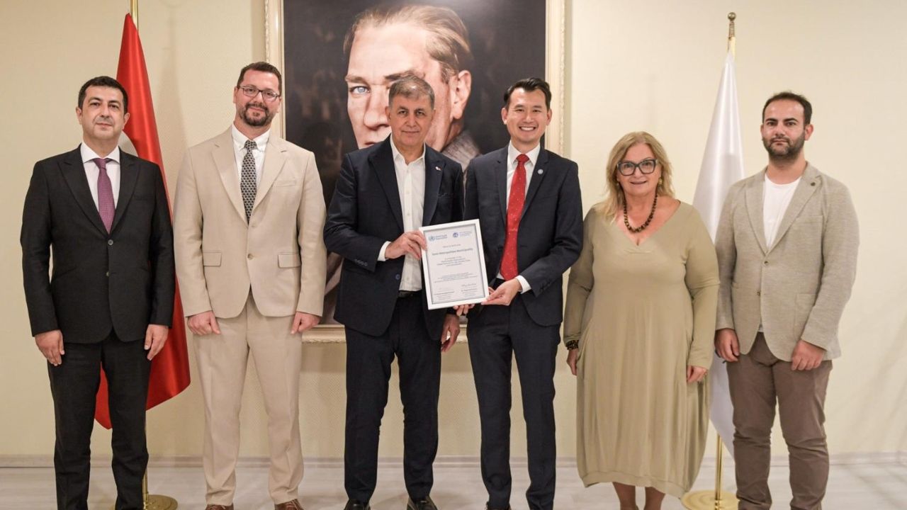 İzmir Büyükşehir Belediye Başkanı Cemil Tugay, Dünya Sağlık Örgütü’nün (DSÖ) Yaşlı Dostu Şehirler ve Topluluklar Küresel Ağı’na katılım sertifikasını aldı. Sertifika, DSÖ Avrupa Bölgesi Yaşlanma ve Sağlık Teknik Sorumlusu Dr. Yongjie Yon tarafından Başkan Tugay’a verildi. Türkiye'de bu ağa üye iki büyükşehirden biri olan İzmir, yaşlı bireylere yönelik hizmetleriyle ön plana çıkıyor. Toplantıya İzmir Büyükşehir Belediyesi yöneticileri ile DSÖ Türkiye yetkilileri de katıldı.