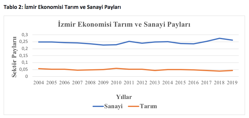 Tablo 2: İzmir Ekonomisi Tarım ve Sanayi Payları