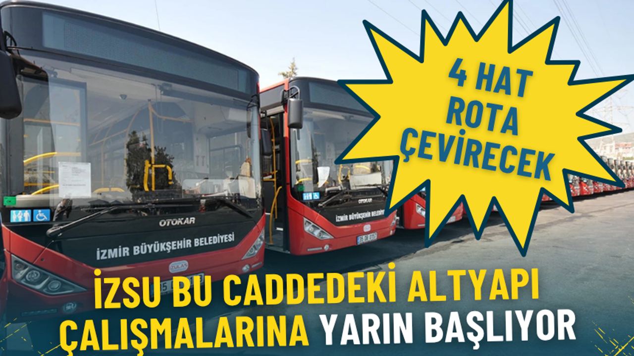 İzmir’de İZSU tarafından Ozan Abay Caddesi’nde başlatılacak 1. etap altyapı çalışmaları nedeniyle bazı ESHOT hatlarında geçici güzergâh değişikliğine gidiliyor. ESHOT Genel Müdürlüğü tarafından yapılan açıklamada düzenlemenin (yarın) 27 Nisan 2026 Pazartesi gününden itibaren geçerli olacağı belirtildi.