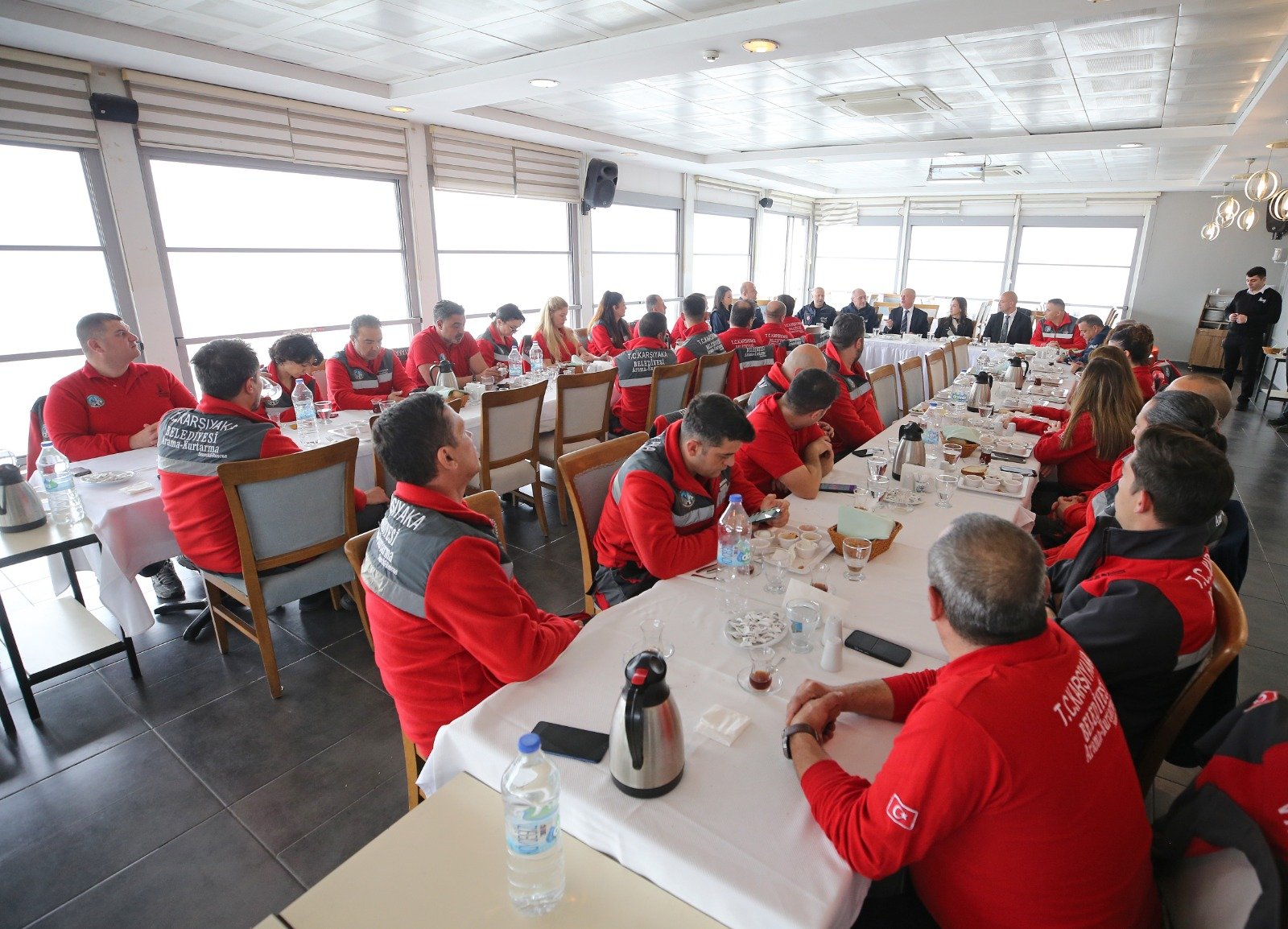 Karşıyaka Belediyesi, AFAD İzmir İl Müdürlüğü tarafından yürütülen Kentsel Arama Kurtarma Akreditasyon eğitimlerini başarıyla tamamlayarak akreditasyon sürecinin önemli bir aşamasını geride bırakan Arama Kurtarma Ekibi için Zübeyde Hanım Nikah Sarayı’nda kahvaltı organizasyonu düzenledi. Karşıyaka Belediye Başkanı Yıldız Ünsal’ın ev sahipliğindeki buluşmaya; AFAD’dan Sorumlu Vali Yardımcısı İsmail Çorumluoğlu, AFAD İzmir İl Müdürü Nazif Ekinci, AFAD İzmir Birlik Müdürü Mahir Aydın Aktaş ve belediye bürokratları katıldı. Buluşmada, halihazırda yürütülen çalışmalar hakkında görüş alışverişinde bulunulurken, kurumlar arası iş birliğinin önemi de vurgulandı.