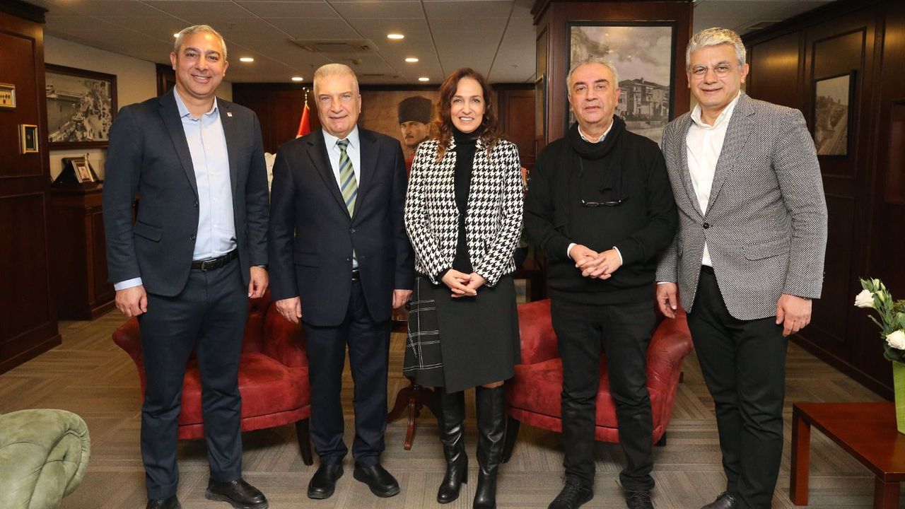 Karşıyaka Belediye Başkanı Yıldız Ünsal, belediye binasındaki makam odasında Karşıyaka'nın eski belediye başkanlarıyla bir araya geldi.