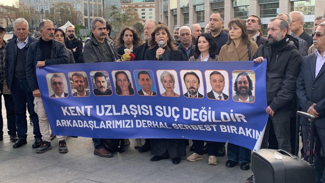 Duruşma öncesi İstanbul Adliyesi girişi duruşması olmayan yurttaşlara ve turkuaz kartı olmayan basın mensuplarına kapatılması üzerine içeri alınmayan yurttaşlar ile güvenlik görevlileri arasında arbede yaşandı. DEM Parti milletvekillerinin danışmanları ve korumaları da adliyeye alınmadı. Öte yandan DEM Parti ve Halkların Demokratik Kongresi (HDK), “kent uzlaşısı” davası öncesi kent uzlaşısına özgürlük talebiyle Çağlayan’da İstanbul Adliyesi önünde açıklama yaptı. HDK Eş Sözcüsü Meral Danış Beştaş, “İktidarın kendine hak gördüğü uzlaşma, hak gördüğü ittifak, hak gördüğü seçimlerde istediği şekilde girmek, istediği adayla girmek, istediği noktada uzlaşmak meselesi, muhalefet söz konusu olunca ‘suç’ olarak lanse ediliyor. Bu bir suç değil. Kenti yönetmek için birlikte hareket etmek suç değil” dedi.