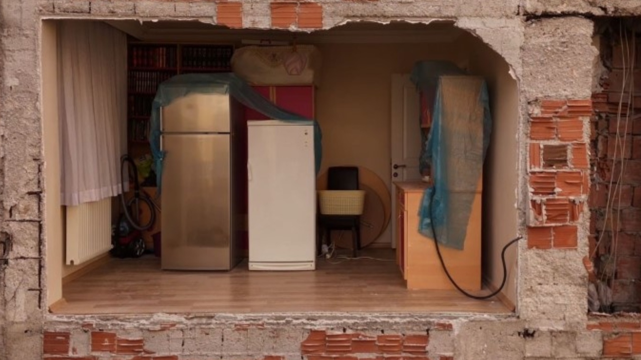 Bahçelievler’de kentsel dönüşüm çerçevesinde yıkım işlemi gerçekleştirilen bir binanın bitişiğindeki binanın duvarının olmadığı ortaya çıktı. Yıkım sonrası binada bulunan dairelerin içi görünürken, büyük çapta maddi hasar meydana geldi. Duvarı olmayan bazı bina sakinleri odalarını mavi brandayla kapattı. Bitişik binanın sakinleri yaşadıklarının ardından duvar yapmayan müteahhite isyan etti.